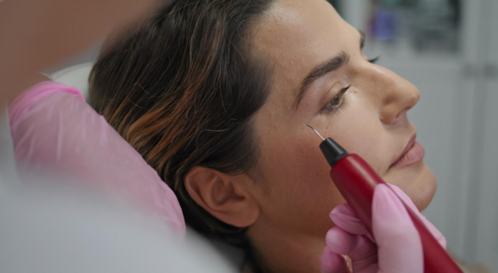 Microneedling is mostly used on the face and may reduce the appearance of acne, scars, dark spots, wrinkles, and large pores.