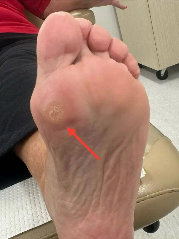- Symptoms: A small, round, raised bump of hardened skin, often surrounded by inflamed skin, which can be painful when pressed.