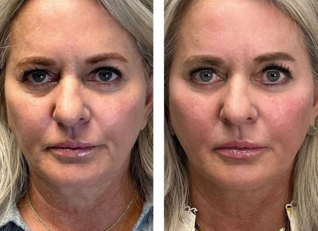 The treatment uses adhesive pads on the face and takes about 20 minutes with no downtime. You will feel warmth from the RF and the involuntary twitching of your facial muscles from the HIFES.